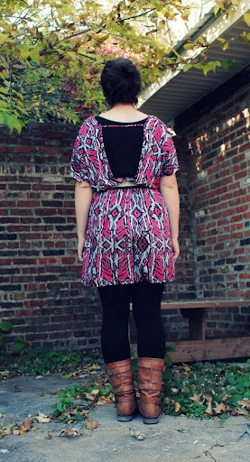 Dress: rue21; Jean Jacket: thrifted; Belt: thrifted; Leggings: TJ Maxx; Boots: Charlotte Russe